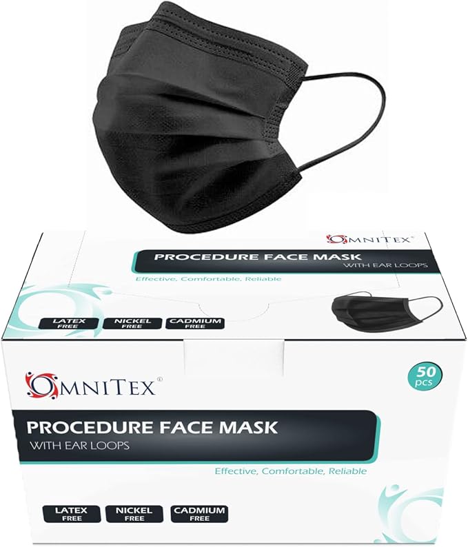 - Omnitex Premium BLACK IIR Medical Grade Face masks with Black Ear Loops, Pack of 50